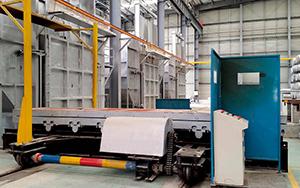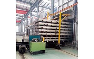 The main purpose of homogenizing furnace charging machine is to feed the aluminum rod after completing the casting process into the homogenizing furnace. The homogenizing charging furnace from our company has fix guide rail. It is driven by electrical engine to move back and forth. When the charging machine is near with the furnace, the electrical engine will drive the pushing rod on the charging machine to feed the aluminum rod into the homogenizing furnace.